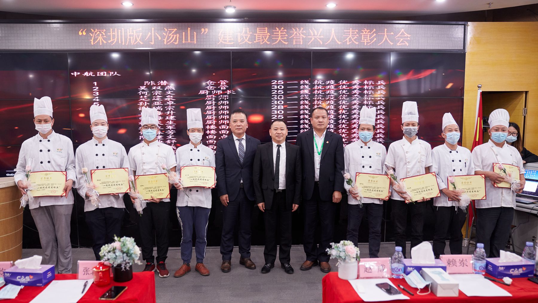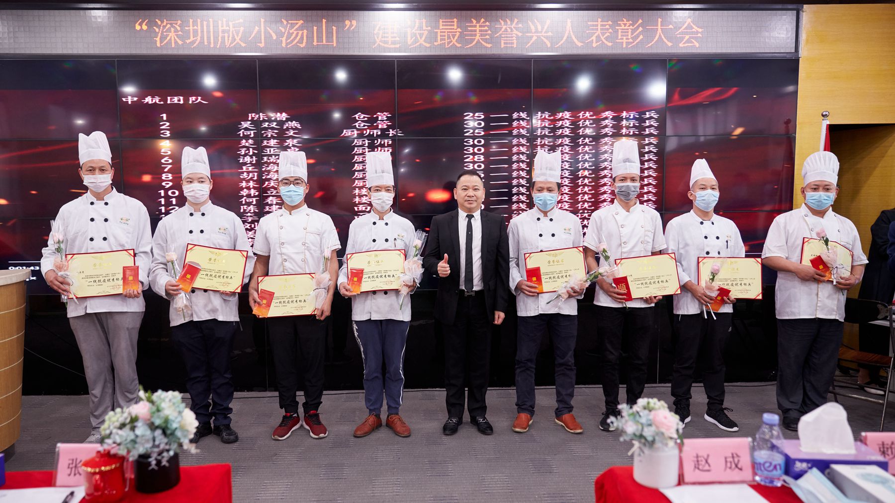出席本次表彰大会的还有集团公司副总裁赵成,集团党支部书记、团餐总经理文庆均,海年职业技能培训学校校长赖东,集团公司营养餐总经理徐翔,集团财务中心总监张小平,集团公司兴庄农产品公司总经理温昌海,誉师傅项目公司总经理欧阳牡丹以及集团公司集团办、财务部、人资部、发展部、采购部、营运部、中航项目、禾正医院项目的全体员工和代表。