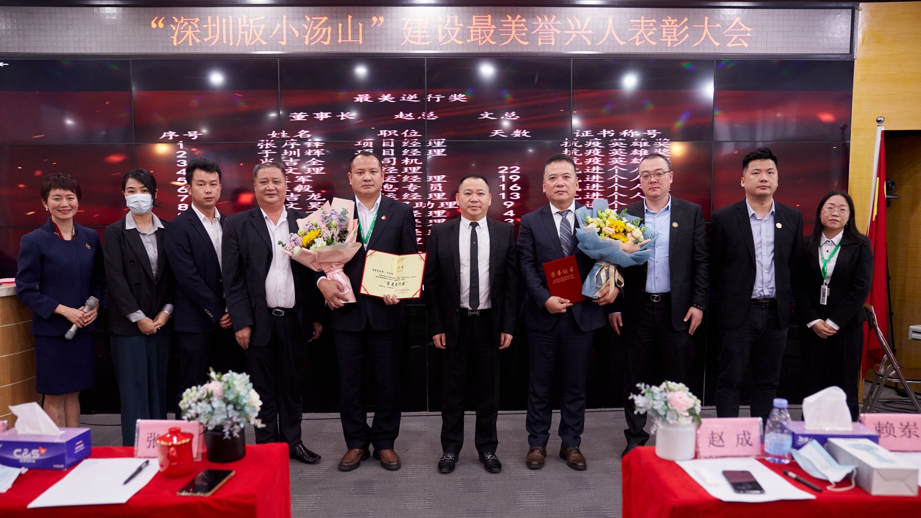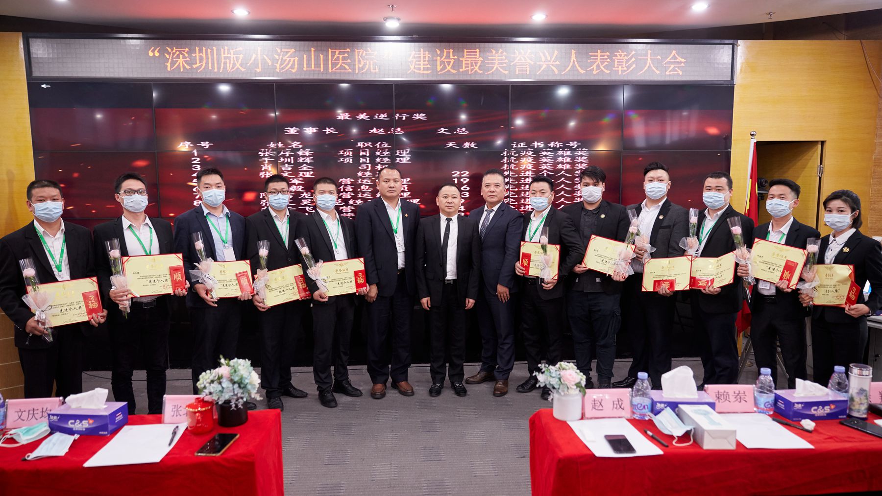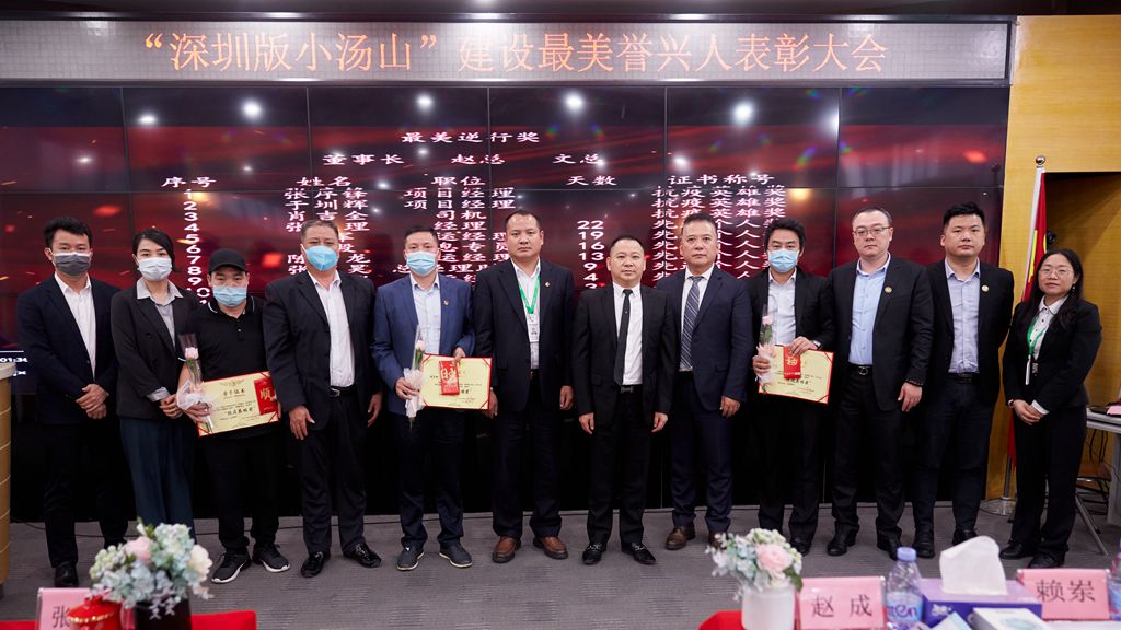 ●集团董事长张北京为“深圳版小汤山”医院建设最美誉兴人颁发荣誉证书并合影留念
